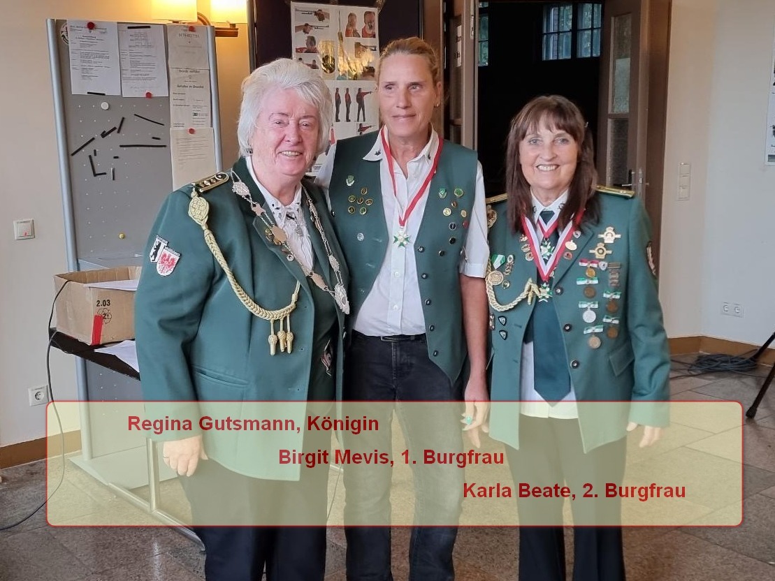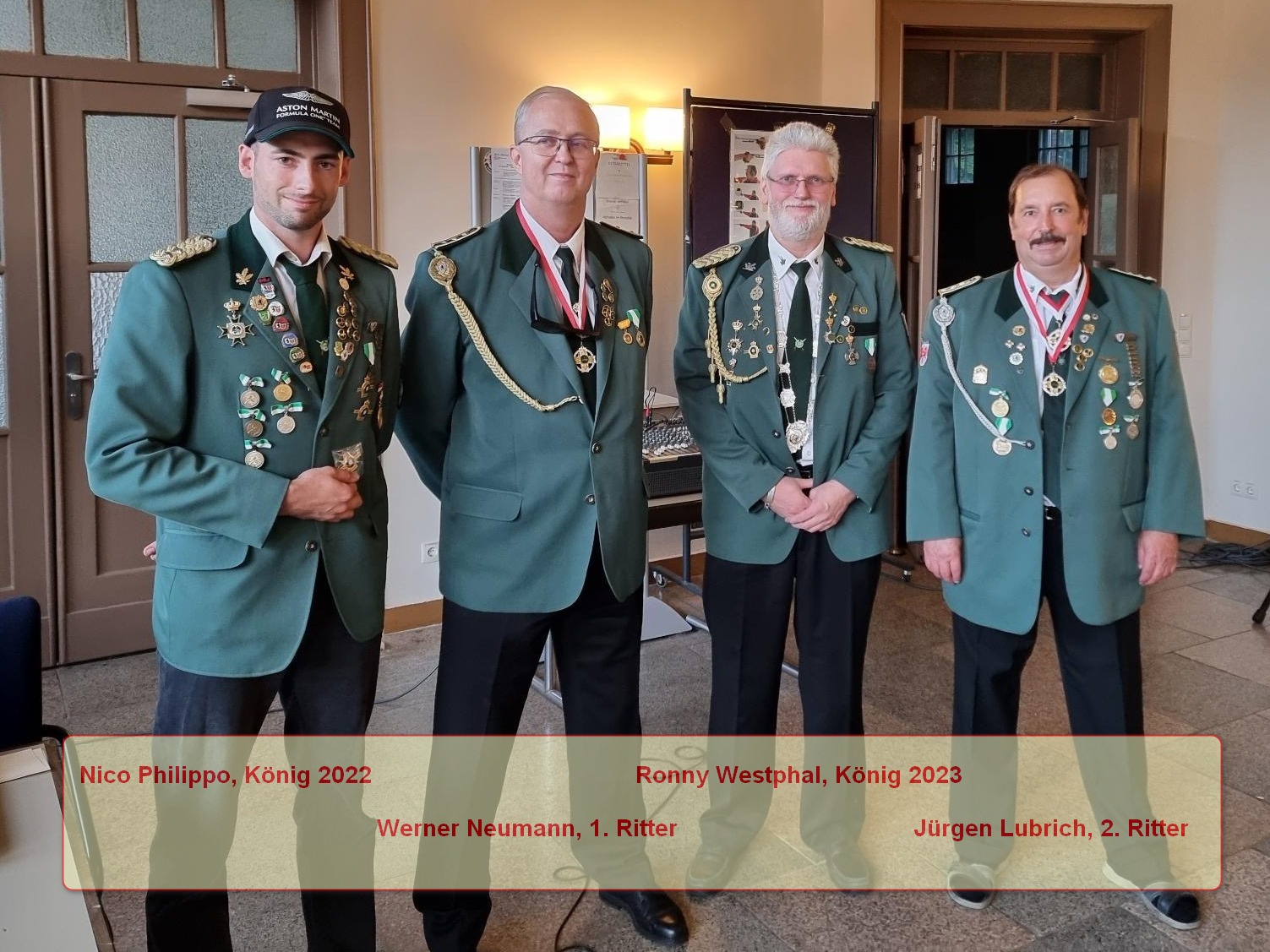 Im neuen Königshaus vertreten sind, König: Ronald Westphal, 1. Ritter: Werner Neumann, 2. Ritter: Jürgen Lubrich, Königin: Regina Gutsmann, 1. Burgfrau: Birgit Mewis, 2. Burgfrau: Karla Beate.
