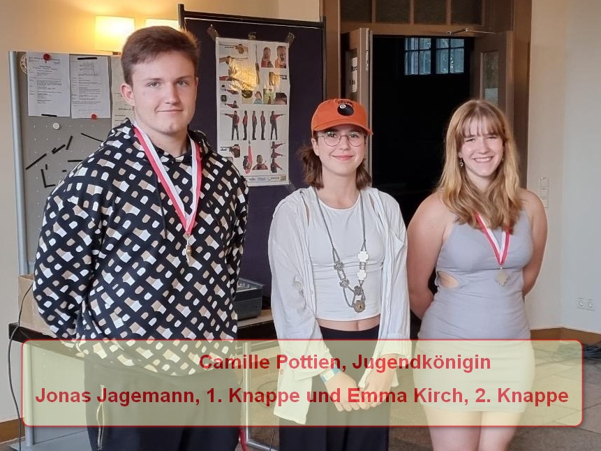 Diesjährige Jugend-Schützenkönigin wurde Camille Pottien, 1. Ritter: Jonas Jagemann und 1. Burgfrau: Emma Kirsch (Gastschützin)
