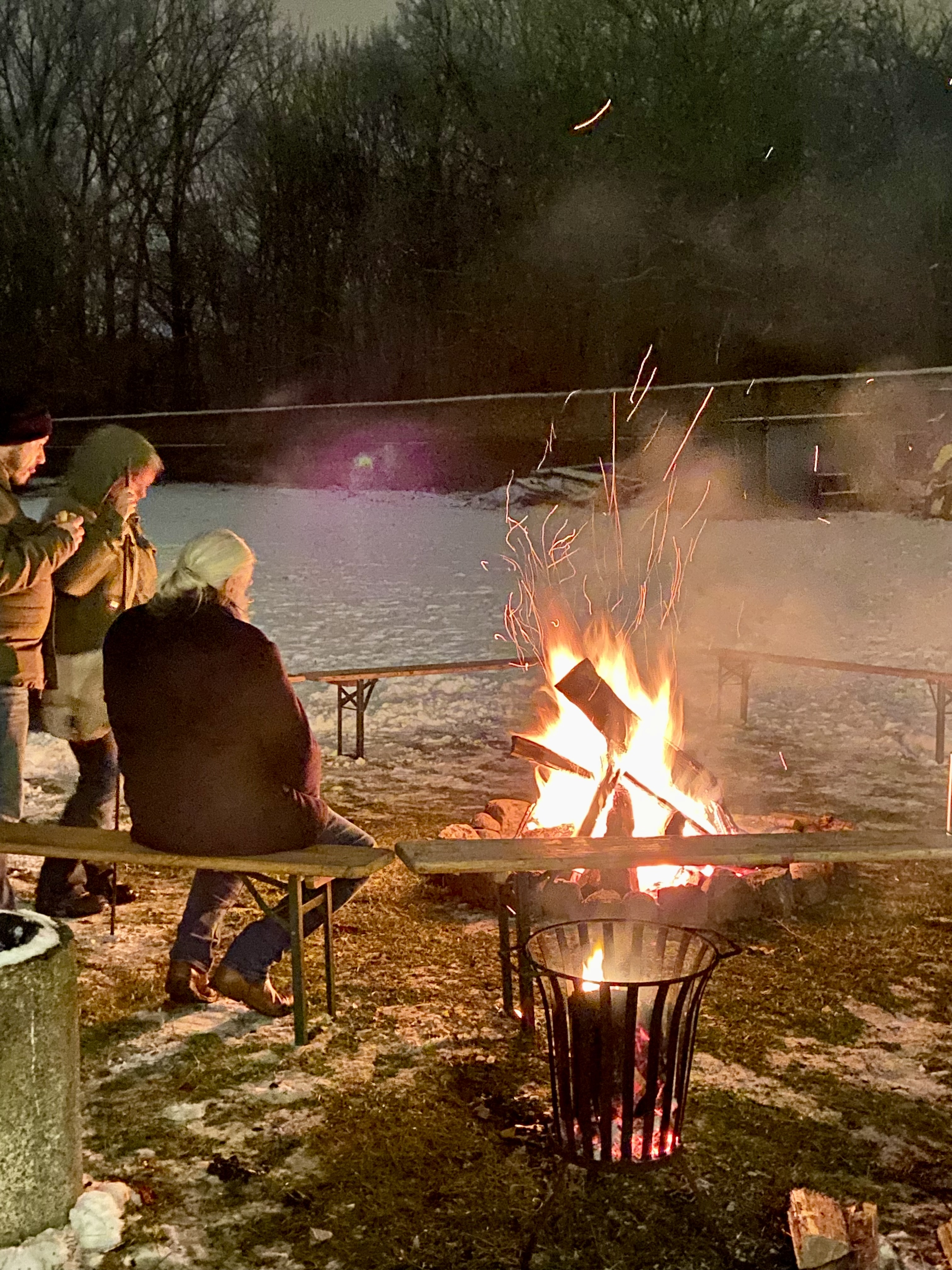 Das gemeinsame Weihnachtsliedersingen und das Lagerfeuer im Schnee